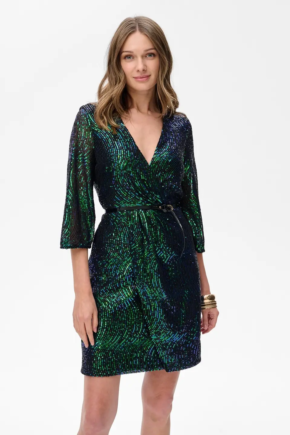 Sukienka Maxima – cekinowa mini w odcieniu zieleni z nutą granatu