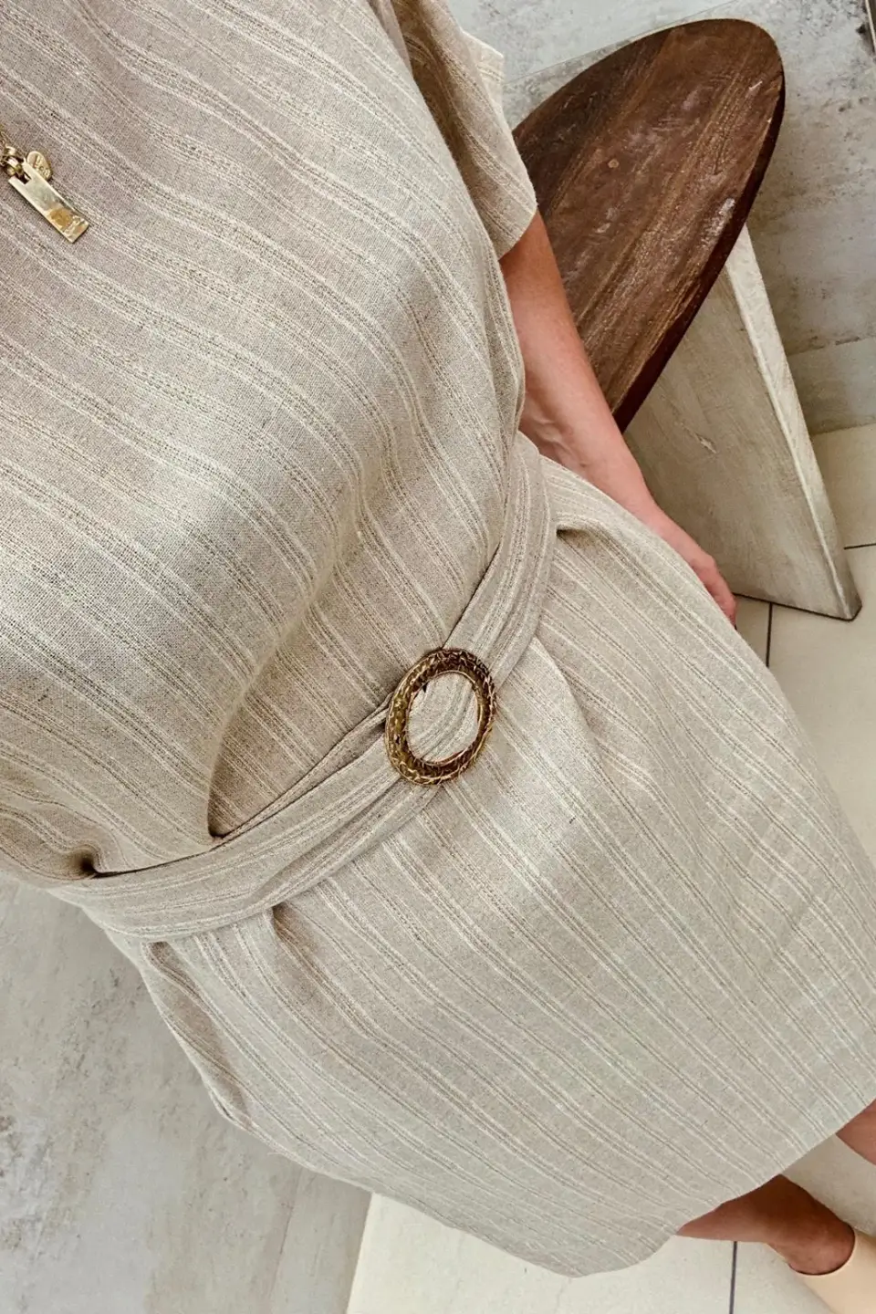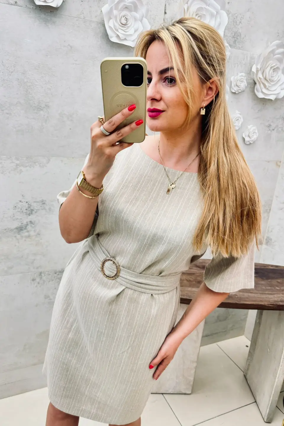 Sukienka SEVILLA to ponadczasowa, sportowa elegancja. Przeszyta delikatną złotą nitką. Sukienka posiada kieszonki. Możemy ją nosić na dwa sposoby: z paskiem lub bez – nie posiada szlufek. Ozdobna, elegancka, złota, metalowa klamerka. Sukienkę możemy nosić na co dzień, a także na specjalne okazje. Wygoda i styl 100%
