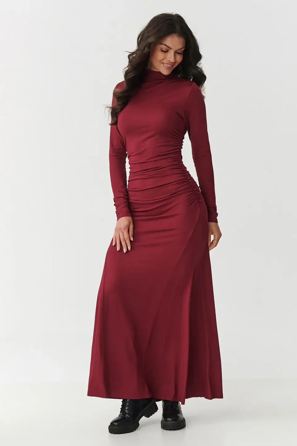 Polski producent MAKADAMIA – Sukienka maxi z golfem i marszczeniem