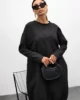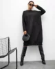 Model wyróżnia się luźnym, komfortowym krojem oraz geometrycznymi przeszyciami, które subtelnie modelują sylwetkę. To sukienka, która nie potrzebuje wielu dodatków – jej forma sama gra pierwsze skrzypce.