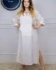 Prosta sukienka / tunika z kieszenią z przodu – typ kangurka. Rękawy 3/4. Na dole po obu stronach rozporki.